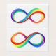 Symbole lumineux de l'infini à partir de couches plastiques de couleurs saturées rouge, jaune, vert, turquoise, bleu et violet sur l'arrière - plan blanc.