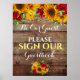 Parfum tournesol et Rose Rustic Mariage Guestbook Signé. Doté d'un arrière - plan rustique en planches de bois avec des tournesols jaunes, des roses rouges, de la verdure et de la respiration blanche pour bébé. Produits correspondants disponibles.