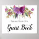 Ce design correspond au reste de la suite mariage avec des fleurs d'aquarelle mauve améthyste, des éclats d'or et de la verdure. Placez ces jolies pancartes dans votre livre d'hôtes pour que vos invités puissent le trouver facilement. Si vous souhaitez que ce design soit affiché sur un autre panneau mariage, envoyez-moi un courriel à shutterbug600@yahoo.com .