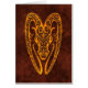 Ce symbole stylisé pour le signe de zodiaque du Bélier est décoré des lignes et des motifs de point complexes. Le motif comporte les RAM élaborées se dirigent avec de longs klaxons débordants s'étendant en bas du côté de la conception. Les textures approximatives et les couleurs brun-rougeâtre naturelles donnent au motif le regard de l'découpage hors de la pierre. Cette conception renversante est une belle et élégante manière à l'exposition de votre signe astrologique.