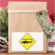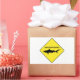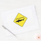 Autocollant rectangulaire avec un panneau de signalisation jaune avec une icône "avertissement requin".