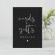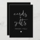 Cette enseigne de cartes et cadeaux présente une police manuscrite pointue et un design minimaliste moderne avec une combinaison de couleurs noir et blanc foncé. Modifiez facilement les couleurs et éditez *le plus* libellé pour répondre aux besoins de votre occasion. Ce signe est parfait pour votre mariage contemporain, industriel, bohème ou autre célébration.