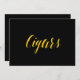 Simple et élégant effet de feuille d'or style calligraphie "Cocktails" signe mariage. Ce panneau mariage "Cigars" est très bien imprimé sur un papier mat, si vous avez besoin de quelque chose de plus traditionnel utiliser le Laid, le Lin ou le Colonné, si vous voulez ajouter une touche de glamour, utilisez le Luxe. En cliquant sur le bouton "customiser", vous pouvez accéder à l'outil d'édition et choisir une couleur arrière - plan différente. Il s'agit d'un panneau de carte plat de 5" x 7", sera vraiment élégant dans un cadre d'image.