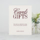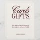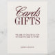 Bienvenue à vos invités avec cette élégante enseigne de cartes et cadeaux bordeaux, parfait pour les guider vers votre table désignée. Conçu avec un arrière - plan rouge vif profond et un mélange raffiné de serif et de typographie de script, ce signe combine sophistication et fonctionnalité. Détail soigné pour mariages, réceptions de vignobles, fêtes d'automne ou cérémonies du soir, il ajoute style et fonction à votre décor. Entièrement personnalisable : personnalisez avec vos noms, votre date de mariage ou votre libellé personnalisé pour convenir à votre événement. Il s'harmonise parfaitement avec la gamme complète de papeterie mariage "Sabrina" pour un look cohésif et intemporel.