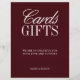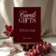 Bienvenue à vos invités avec cette élégante enseigne de cartes et cadeaux bordeaux, parfait pour les guider vers votre table désignée. Conçu avec un arrière - plan rouge vif profond et un mélange raffiné de serif et de typographie de script, ce signe combine sophistication et fonctionnalité. Détail soigné pour mariages, réceptions de vignobles, fêtes d'automne ou cérémonies du soir, il ajoute style et fonction à votre décor. Entièrement personnalisable : personnalisez avec vos noms, votre date de mariage ou votre libellé personnalisé pour convenir à votre événement. Il s'harmonise parfaitement avec la gamme complète de papeterie mariage "Sabrina" pour un look cohésif et intemporel.
