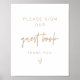 Ce panneau "S'il vous plaît signer notre livre d'or" comporte une police manuscrite pointue avec une combinaison de couleurs beige et terre cuite inspirée des chutes. Toutes les couleurs sont modifiables pour correspondre à votre thème !