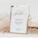 Bienvenue à vos invités avec élégance et une touche personnelle grâce à notre panneau de table "Please Sign Our Guestbook". Conçu avec simplicité et modernité en son coeur, ce panneau présente une belle police calligraphique qui ajoute une touche sophistiquée à votre décor mariage. Parfait pour le couple contemporain à la recherche d'un mélange de style et de fonction, ce panneau invitation vos proches à laisser leur marque lors de votre journée spéciale. Son design minimaliste lui permet de compléter n'importe quel thème mariage, ce qui en fait un complément versatile et chéri à votre célébration. Elevez votre table de livre d'or avec ce panneau exquis et créez des souvenirs durables.