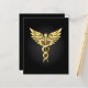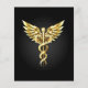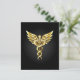 Symboles Caduceus polygonaux or sur arrière - plan noir isolé. Basse poly symbole de la médecine.