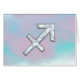 Une mère de perle Sagittarius symbole zodiac sur un arrière - plan coloré pastel bleu bébé et rose déco imprimé. Un design moderne pour une idée cadeau d'anniversaire sur mesure pour elle. Utilisez le lien "Demandez à ce concepteur" pour nous contacter pour vos demandes spéciales de design ou pour obtenir de l'aide pour votre projet de personnalisation.