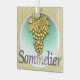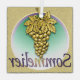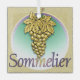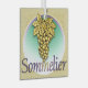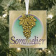 L'illustration originale de ZoeSPEAK sur cet ornement de verre présente un bouquet doré de raisins. Une épingle d'or comme celle-ci est portée par un sommelier. Un sommelier, ou sommelier, est un professionnel du vin formé et bien informé qui se spécialise dans tous les aspects du service du vin ainsi que l'association vin et nourriture. Dans cette illustration, les raisins éclairent les lettres violettes profondes "sommelier", comme le soleil dans les vignobles. Une forme ronde et verte fait écho à la bouteille de vin, aux verts et aux rouges profonds du vignoble. Un arrière - plan texturé de liège entoure la scène.