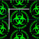 Symbole d'avertissement de danger biologique tissu motif en noir avec symboles de danger biologique vert brillant entourés de texte "Biodanger". Choisissez parmi plusieurs types de tissus dans les fibres naturelles et synthétiques. Le Motif est déverrouillé, ce qui signifie que vous pouvez le redimensionner si vous avez besoin d'un tissu à mini-motifs pour des maquettes, des projets d'art, des vêtements de poupée, etc.