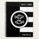 Custom Planner, Zodiac Sign Pisces Astrologie Sceau Horoscope Symbole, deux poissons nageant dans des directions opposées, Custom Year 2019 / 2020 Modern Black and White Striped Motif Élégant Planner, Unique Gift, vous pouvez changer ou supprimer tout le texte