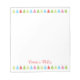 Ce mignon bloc-notes comporte une bordure d'arbres de Noël lumineux et colorés en vert, bleu, rouge et rose. Personnalisez le nom personnalisé pour le fourre-tout parfait pour le stockage.