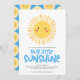 Sympa jaune soleil illustration fête d'anniversaire invitation. Design d'illustration en arc-en-ciel jaune typographie. Partie d'une collection.