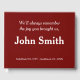 Ce livre d’or minimaliste sur les funérailles et commémorations comporte le message "Nous nous souviendrons toujours de la joie que vous nous avez apportée", ainsi que le nom customisé et les dates de naissance et de décès de l’individu qui est décédé. Il utilise un arrière - plan rouge foncé, et un texte blanc. Il pourrait être utilisé pour enregistrer des souvenirs chéris de quelqu'un qui est récemment décédé.