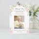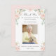 De belles et élégantes compositions florales roses décorent les coins de cette carte de remerciements funéraire. La photo de votre être aimé et le sentiment de remerciement sur le front.