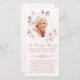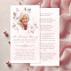 Cette élégante carte de prière funéraire de sympathie photo personnalisée comprend une photo bordée d'aquarelle peinte à la main avec un cadre floral aquarelle peint à la main de roses roses et de verdure. Ci-dessous, dans le script classique, on lit "In Loving Memory" avec un nom et des dates à personnaliser avec un bref mémorial. Le dos de la carte a une prière qui peut être laissée telle quelle ou customisée. Conçu par l'artiste Susan Coffey.