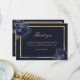 Une carte de remerciements de sympathie simple et élégante avec photo. Un arrière - plan bleu foncé, un cadre en faux or et des fleurs bleues. Personnalisez et ajoutez votre note de remerciement.