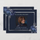 Une carte de remerciements de sympathie simple et élégante avec photo. Un arrière - plan bleu foncé, un cadre faux argenté et des fleurs bleues. Personnalisez et ajoutez votre note de remerciement.