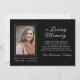 Ce design noble présente un cadre doré élégant avec du texte blanc manuscrit et serif En mémoire d'amour sur l'arrière - plan noir. Facile à ajouter photo.Le côté inverse de la carte est de couleur noire. Donnez vos proches pendant les funérailles ou envoyez-les après les funérailles.