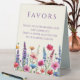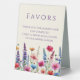Améliorez votre décoration de réception de mariage avec ce panneau Tabletop Favors moderne et élégant. Cette enseigne magnifiquement conçue avec des Fleurs sauvages se fond harmonieusement avec votre thème, ajoutant une touche de luminosité à votre table. Explorez la collection pour un mariage à thème magnifique.