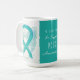 Le syndrome ovarien polykystique (SCSP) utilise un ruban de sensibilisation turquoise pour montrer son soutien à sa sensibilisation. Cette tasse personnalisée présente des peintures d'art de l'ange gardien du ruban de sensibilisation turquoise avec le message "I Hope and Support PCOS Awareness!" Les tasses à café ou tasses à ruban d'art de l'ange gardien de conscience turquoise personnalisées peuvent être customisées de messages personnalisés pour faire de grandes tasses de cause pour des collecteurs de fonds de sensibilisation, des cadeaux de tasse de conscience, ou d'autres événements spéciaux ou pour des occasions de soutien. Faites vos propres mots customisés pour un message personnel d'espoir et de soutien à partager!