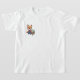 This illustration features an adorable orange fox character beaming with joy while pushing a shopping cart overflowing with groceries. Clad in a red t-shirt and blue denim overalls, this cute animal mascot is on a mission to stock up on favorite treats. The metal cart is packed to the brim with colorful snack items, including bags of potato chips, cartons of milk, chocolate chip cookies, and sweet candies. The design highlights the fox's fluffy tail and big, shiny eyes, capturing the pure excitement of a market run and the happiness of buying delicious food.