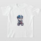 This energetic illustration captures a lovable panda bear in the middle of a fun bicycle ride. The happy character is geared up for safety, sporting a blue helmet with a white stripe, along with protective knee and elbow pads. Riding a bright red mountain bike with knobby tires, the panda displays a beaming smile and rosy cheeks, embodying a spirit of adventure and outdoor joy.