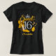 16e anniversaire. Nom modifiable. Douce fille de 16 ans. Talon d'or, gâteau de tasse, arrière - plan noir, étoiles, rhinstines. Design glamour pour une fille, jeune femme