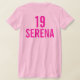 Tee-shirt à double face blanc, rose vif, rose clair et blanc pour 19e anniversaire. Un graphisme simple et brillant dans lequel vous pouvez ajouter trois photos de votre fille d'anniversaire. Customisez ce tee-shirt photo anniversaire avec votre propre âge et nom d'anniversaire, chemise d'anniversaire lit actuellement dix-neuf. D'autres articles correspondants sont disponibles. Graphique et design uniques par www.mylittleeden.com