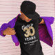 Tee-shirt sur mesure, noir et or, trentième anniversaire avec trente ballons d'hélium en or, le dicton "encourage à 30 ans", "vieilli à la perfection", et la date.