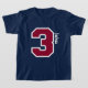 Nom fait sur commande de trois ans de NOMBRE de 3ème garçon ROUGE d'anniversaire. Idée mignonne d'anniversaire avec un grand lettrage de nombre et d'amusement pour de trois l'anniversaire ans spécial. Ajoutez le nom du tarte de cutie ! Tout le texte est personnalisable.