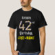 Cette chemise de fête d'anniversaire fleurie et d'inspiration nature présente le message "Happy 42nd Birthday" et un nom personnalisé. Le grand numéro "42" comporte différentes icônes de fleurs. Des chemises ludiques, customisées et fleuries comme celle-ci pourraient être portées par les invités lors d’une fête d’anniversaire organisée pour célébrer le quarante-deuxième anniversaire de quelqu’un. [~Z0000656]