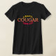 A bold, stylish design aimed at confident older women. The centerpiece is a sleek, illustrated cougar—either prowling or lounging—with smooth, modern linework and a slightly glamorous edge. The word “Cougar” sits prominently across or beneath the image in a high-contrast cougar animal print for a luxury feel or a flowing script for elegance.