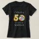 Pour un t-shirt noir/foncé. Personnalisez et ajoutez votre photo. Texte : Célébration de 50 ans de mariage. Le numéro 5 est écrit avec une police de style ballon. Cadre photo à l'aspect or faux.