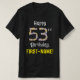 Ce design amusant et inspiré du jardin de chemise de célébration d'anniversaire a le message "Happy 53rd Birthday," avec un nom personnalisable. Le grand nombre "53" se compose de différentes icônes de fleurs. Des chemises florales et personnalisées comme celle-ci pourraient être portées par les participants à une fête d'anniversaire organisée pour célébrer quelqu'un qui a cinquante-trois ans. [~Z0000656]