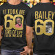 60e anniversaire noir et or, il m'a fallu 60 ans de vie pour regarder cette bonne coutume deux photos et nom sur le t-shirt du dos. Fun 60e photo personnalisée noir et or conception de tee anniversaire. Personnalisez cette chemise honoraire d'anniversaire avec deux photos du garçon ou de la fille d'anniversaire au milieu du numéro 0 sur le devant et le dos. Idéal pour ajouter un peu de plaisir à un cadeau de 60 ans. D'autres objets et couleurs assortis sont disponibles. Design exclusif par Sarah Trett pour www.mylittleeden.com