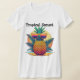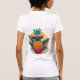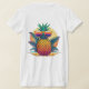 Ce décor de T-shirt plein de vitalité présente un ananas stylisé portant une paire de lunettes de soleil sur fond de coucher de soleil tropical. L'ananas est détaillé avec un motif texturé, et les lunettes de soleil reflètent les couleurs vives du coucher du soleil. Des frondes de palmiers encadrent les côtés inférieurs de l'image, rehaussant son thème tropical.
