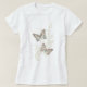Veste à queue épaisse et papillon de femme peinte avec des graphismes superposés et des t-shirts stylisés tourbillonnants fleur sauvage. Montre ton amour des papillons. Dessin encré original et graphismes de fleurs sous-jacentes par Sarah Trett.