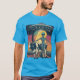 Ce t-shirt plein de vitalité et de fantaisie présente un alien avec un halo brillant, debout au-dessus d'une vache, sous un OVNI flottant émettant un faisceau lumineux. La toile de fond présente un coucher de soleil surréaliste avec des rayures horizontales audacieuses dans des tons riches et chauds qui contrastent magnifiquement avec le ciel sombre parsemé d'étoiles et de planètes. Le design fusionne des éléments de science-fiction et d'humour, ce qui en fait une pièce attrayante et de départ de conversation. Parfait pour ceux qui apprécient un mélange d'extraterrestre et d'inattendu, ce design est à la fois ludique et artistique.