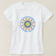 Un abstrait motif circulaire coloré sur un t-shirt blanc pour un look unique et tendance.