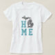 The State of Michigan Grey Blue Poppies Home Type T-Shirt from The Michigander. La forme du Michigan est remplie d'une belle impression de pavots à fleurs gris et bleu, Design de The Michigander.