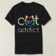 Beau design "Cat Addict". La tête du chat dans une lettre "A" de couleur arc-en-ciel est très originale. Le chat est noir et a des yeux bleu clair. Le texte est défini dans une police blanche tendance. Meilleur pour les vêtements sombres. Nous avons le même design avec des couleurs rouges et blanches pour les vêtements de couleur claire. © Pascal Alexandre.