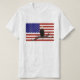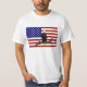 Un aigle à tête blanche scanne le ciel de sa perche sur une branche d'arbre ; superposé sur un drapeau des Etats-Unis.