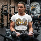 Deux aigles avec de gros muscles et en flexion. Ce design semble vraiment efficace sur ce T-shirt féminin