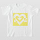 Un logo graphique, fait sur mesure. AMOUR en blanc sur jaune.