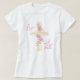 T-shirt imprimé d'aquarelle couleur florale amour et foi. Belles fleurs d'orchidées rose vif tordues autour d'une aquarelle décorative en bois croisé. Idéal pour Pâques © Imprimé à partir d'un tableau original d'aquarelle à la main par l'artiste Sarah Trett pour www.mylittleeden.com
