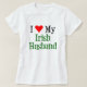 J'aime mon mari irlandais comportant un coeur rouge et un lettrage vert. Montrez votre amour pour votre homme irlandais avec cette conception mignonne. Perfectionnez pour porter pendant le jour de valentines, un anniversaire ou quand vous vous sentez romantiques.