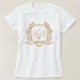 Ce t-shirt de pickleball a une aquarelle d'une crête entourée de branches florales avec des pagaies de pickleball vert et rose en vichy centre. Les couleurs utilisées comprennent le vert mousse, le rose roux et le bronzage. Vous pouvez personnaliser avec un nom.