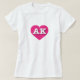 Ce t-shirt est doté d'un coeur rose vif et chaud contenant les lettres coques AK, en haut, blanches et audacieuses, l'abréviation officielle de l'Alaska, la dernière frontière.